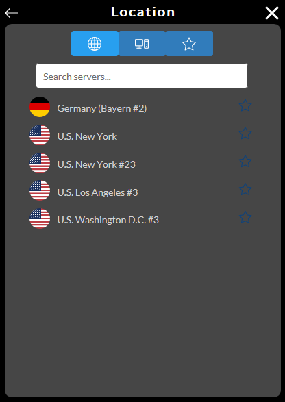 - If you want to change a server please click on the Country Flag on top right corner.
